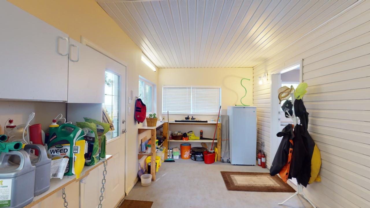 The kitchen includes a microwave, fridge, dishwasher and electric stove. A large workshop and storage area off the kitchen (with 2nd fridge) leads to your deck in the wooded backyard, which has a shed for your use. Tenants will be expected to share in general yard maintenance (equipment supplied). Energy-efficient mini-split heat pumps provide both heating and cooling. Off-street parking for two vehicles. Window coverings (blinds) included.