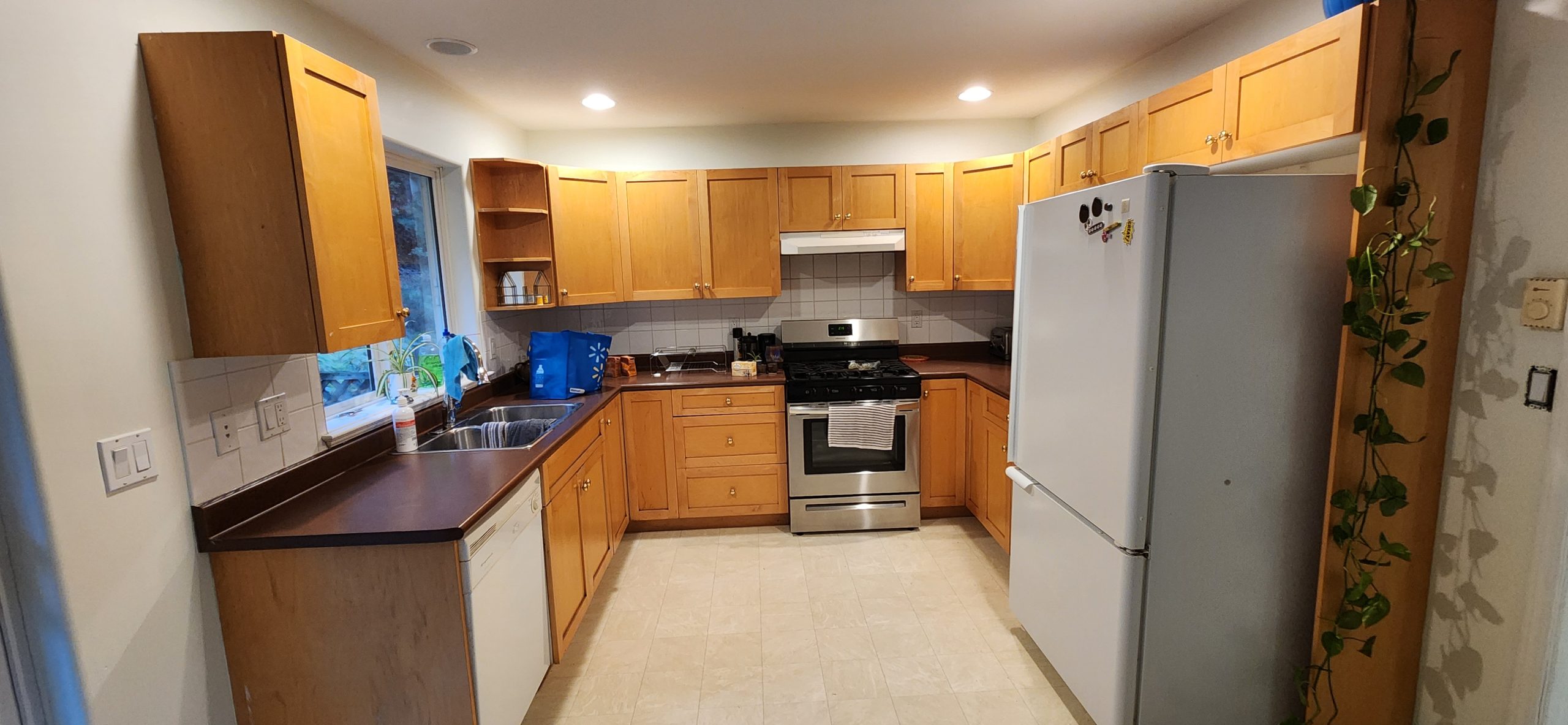 Full kitchen with fridge, stove, dishwasher, and microwave