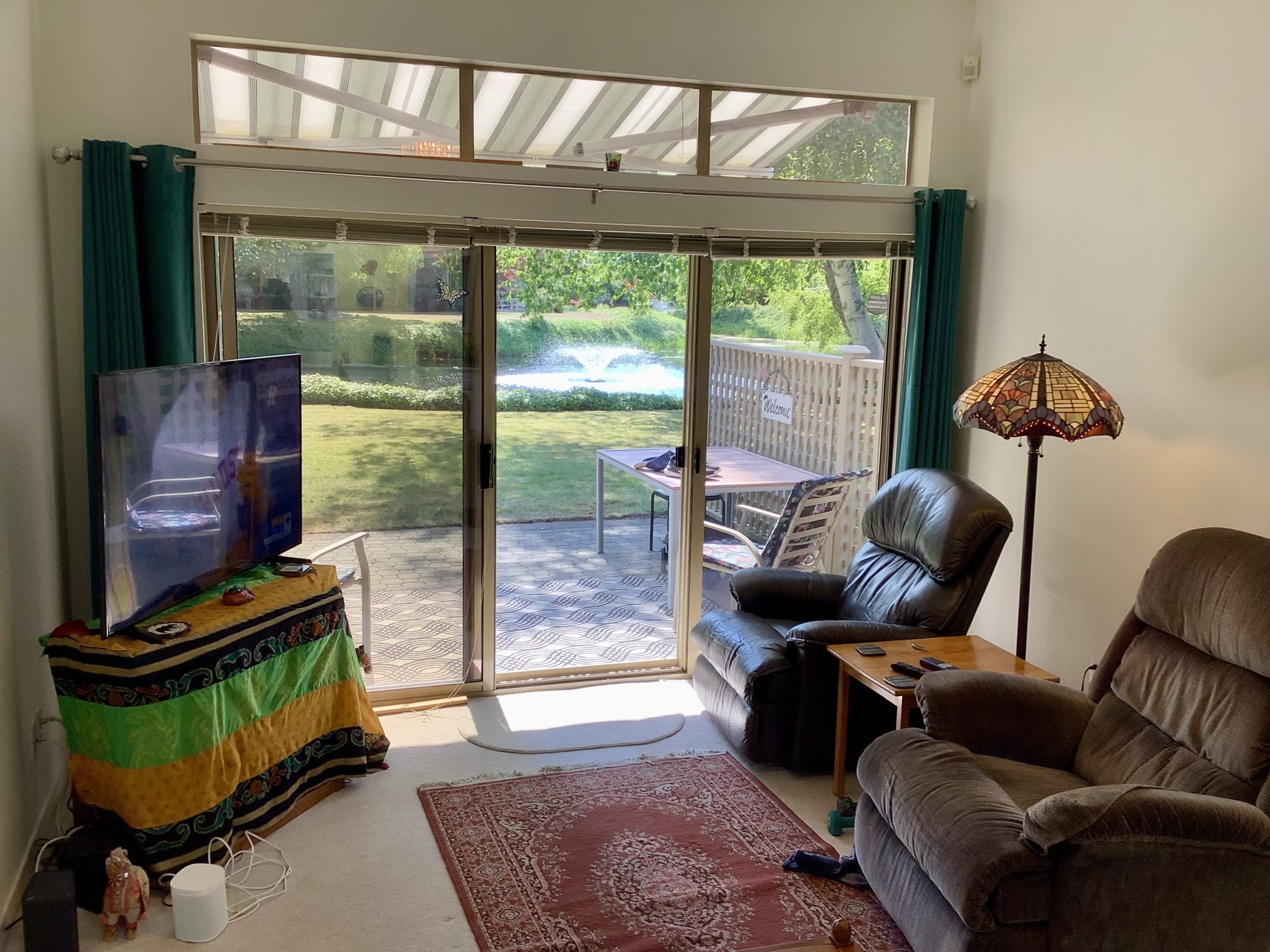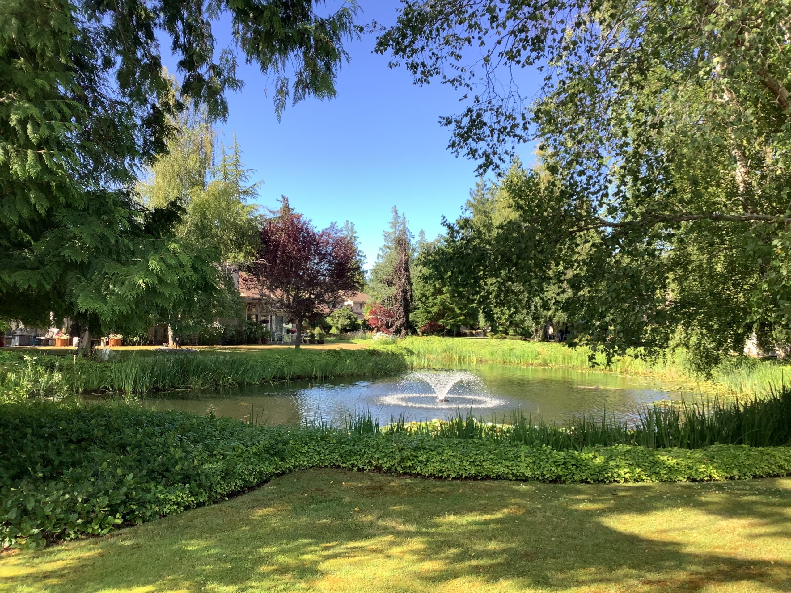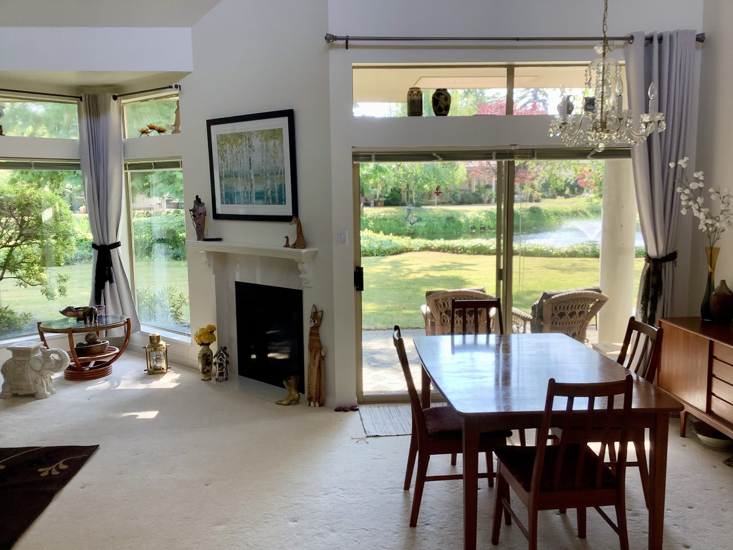 This beautiful one level, bright, spacious 2 bed/2 bath 1,627 sq. ft. townhome is located within Morningstar Golf Course in sought-after St. Andrews Lane, on Pond Place. The home backs onto the pond with views of wildlife in this well maintained home in a community with immaculate landscaping. The floor plan includes a spacious kitchen with island, living room & natural gas fireplace, laundry, pantry, fantastic high ceilings, skylights, & access to the patio. The large windows showcase the beautiful grounds & amazing views. There is a walk-in closet & ensuite bathroom attached to the primary bedroom. The second bedroom has direct access and is attached to the main bathroom. Close to shopping, beaches, hiking and bike paths. Owner offering option of second bedroom being furnished, if preferred.