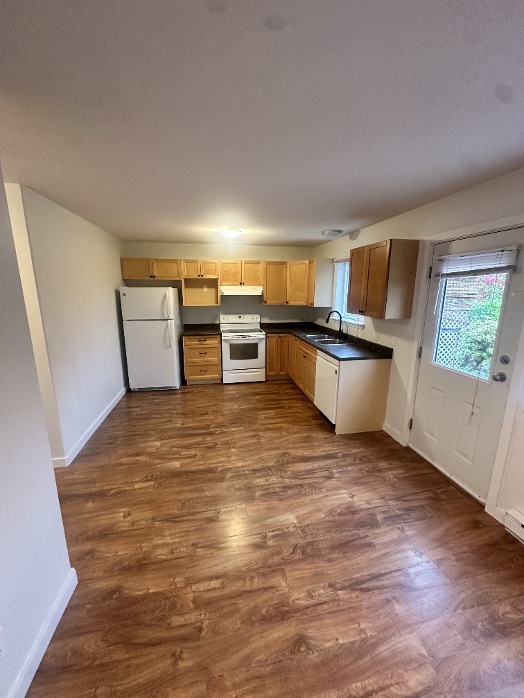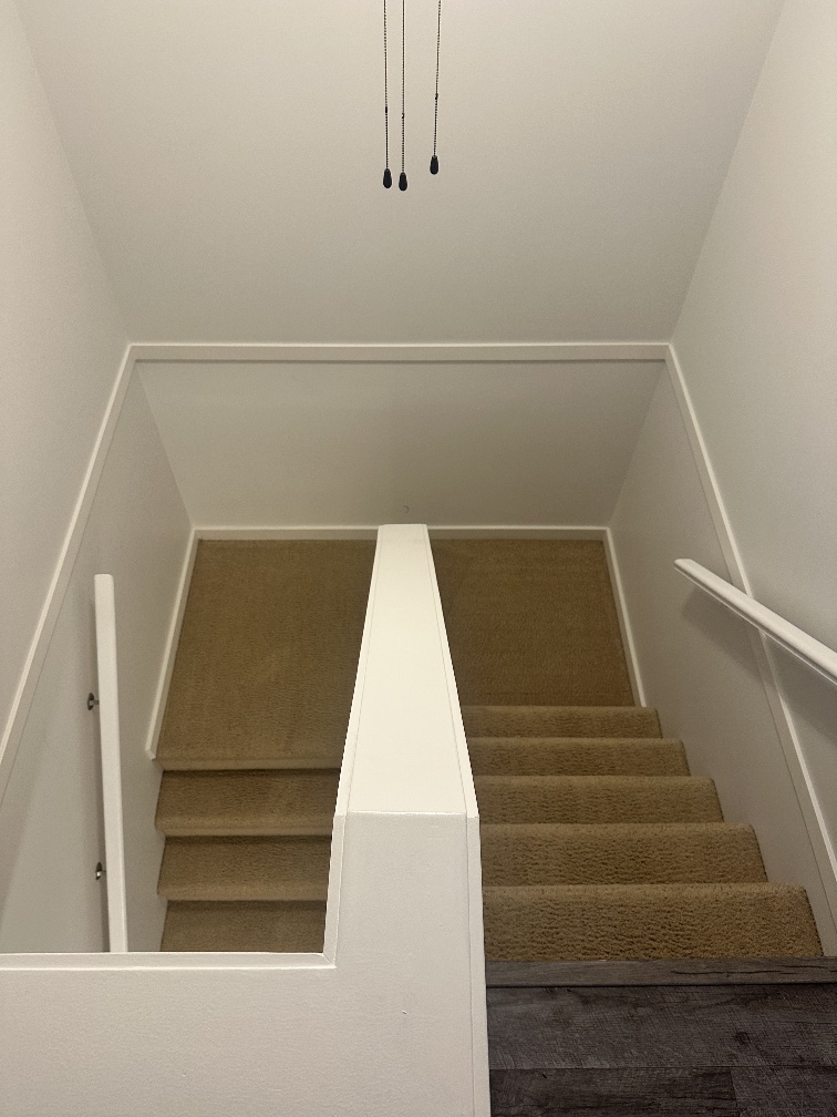 Downstairs there is another bathroom, laundry, living, dining, kitchen